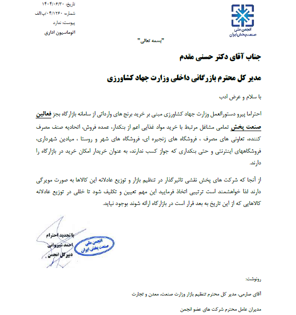 پنجمین جلسه هیات مدیره انجمن ملی صنعت پخش برگزار شد.