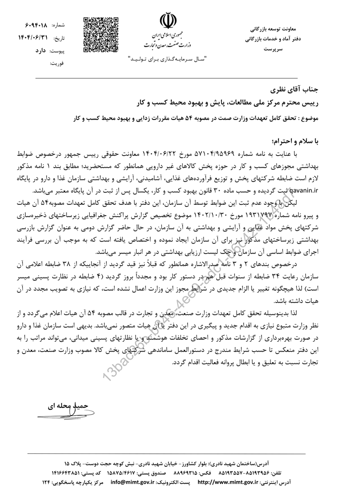 تحقق کامل تعهدات وزارت صمت در مصوبه ٥٤ هیات مقررات زدایی و بهبود محیط کسب و کار