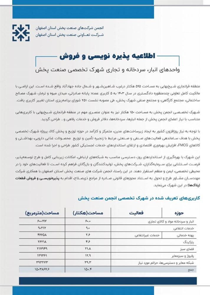 اطلاعیه ایجاد شهرک تخصصی صنعت پخش اصفهان